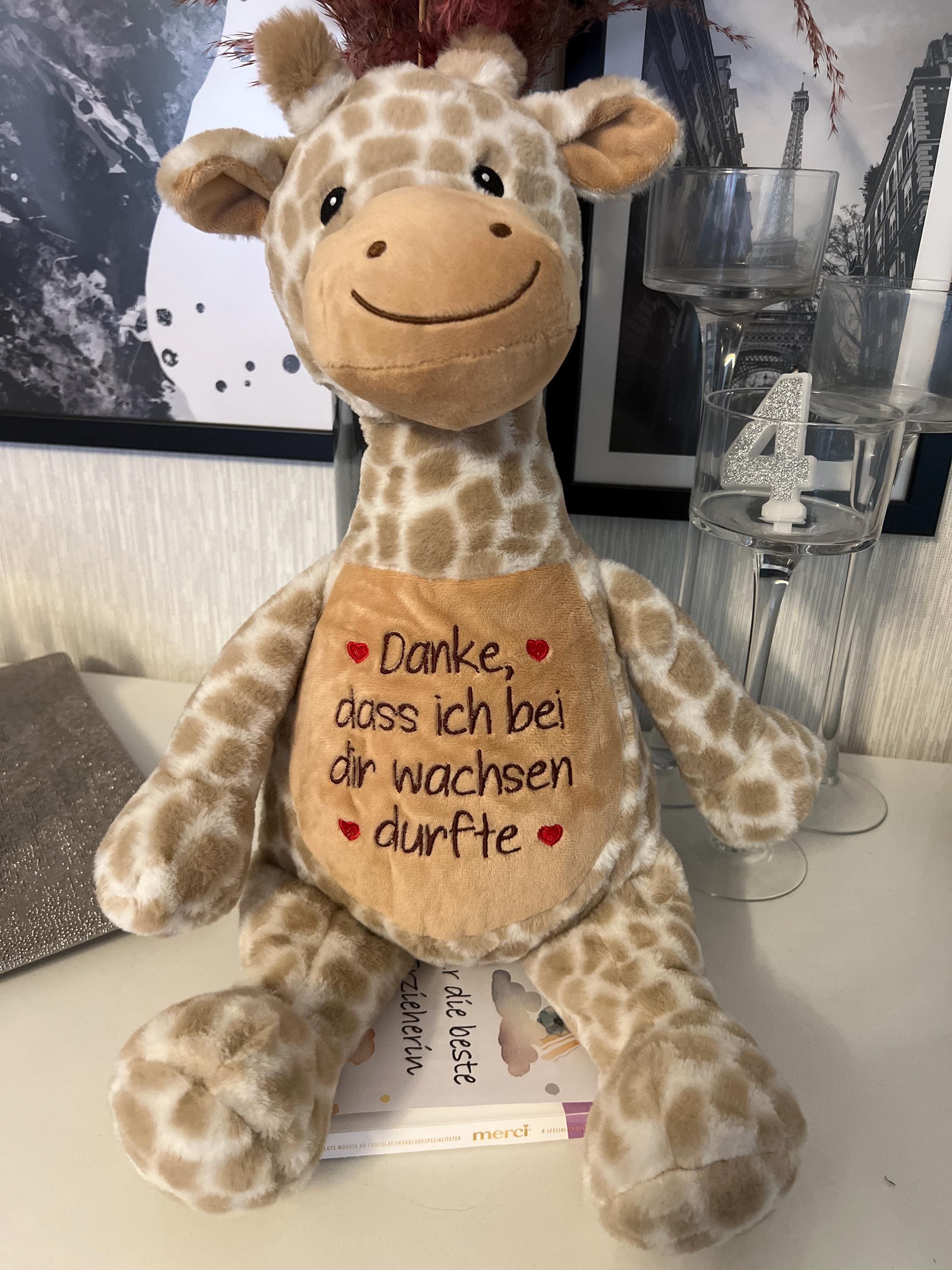 Die Giraffe ist größer als erwartet und von sehr guter Qualität. Hinten gibt es ein Reisverschluss zum Abziehen und Waschen… Ein wirklich sehr schönes Geschenk